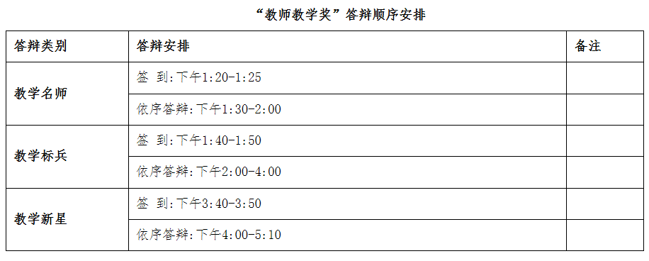 附:“教师教学奖”答辩顺序安排