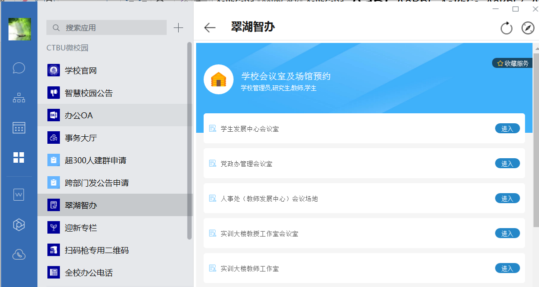 通过bat365在线中国官网登录入口企业微信平台--翠湖智办--服务中心--学校会议室及场馆预约—实训大楼教师工作室预约。