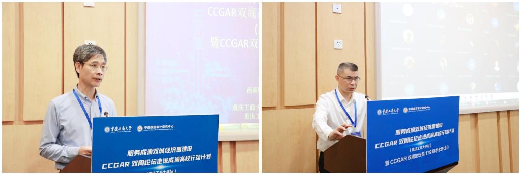 5月7日由会计学院和成渝地区双城经济圈协同发展中心联合举办的中国政府审计研究中心CCGAR双周论坛在图书馆会议室召开。校长孙芳城、副校长李敬、会计学院分党委书记罗惠玉、会计学院院长罗勇、会计学院专职组织员(正处级)尹建平、会计学院副院长周兵、黄辉、钟廷勇出席本次会议。与会嘉宾还有审计署审计科研所副所长刘力云、东北财经大学会计学院副院长刘行、西南财经大学蔡春教授及会计学院讲师杨钦皓。会议开幕式由罗勇主持。