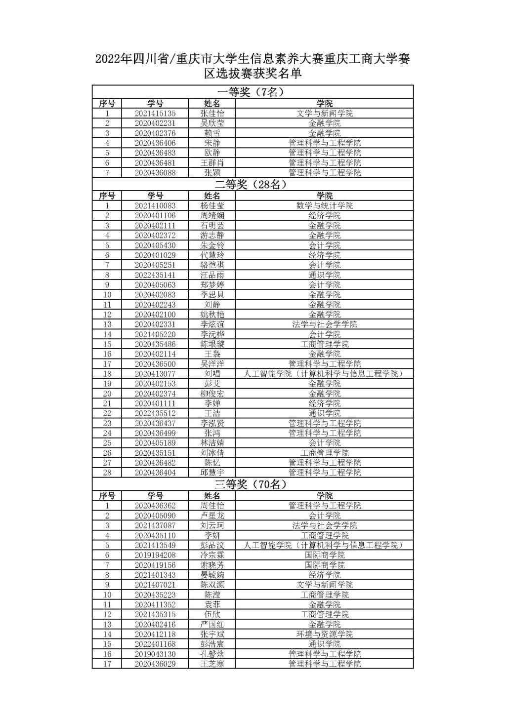 自9月22日发布比赛预通知以来,各学院同学积极踊跃报名参赛。本次比赛365官网注册人数1600余人,共有来自19个学院的近700名学生参加了比赛。在平台和指导老师的共同培训指导下,同学们积极自主学习,取得了优异成绩,75名同学在川渝高校28000余名全体参赛同学中排名前1800名以内,位列重庆市高校第二名,仅次于重庆大学。组委会根据比赛成绩排名(分数相同者答题时间短者排名靠前),共评出一等奖7名,二等奖28名,三等奖70名,获奖名单请见附件。