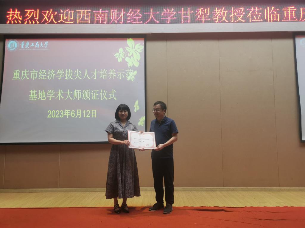 第二阶段,学校聘请甘犁教授为重庆市经济学拔尖人才培养示范基地“学术大师”,经济学院院长宋瑛为甘犁教授颁发聘书。宋瑛代表学校对甘犁教授加盟bat365在线中国官网登录入口表示诚挚的欢迎,她表示,365官网经济学拔尖人才培养示范基地正在推进国内外学术大师“导师制”人才培养模式,通过学术大师言传身教,接触学术理论和思想文化研究前沿,加强对拔尖学生的精神感召、学术引领和人生指导,着力培养一批学科基础扎实、创新能力突出、国际视野宽广的经济学拔尖学子。