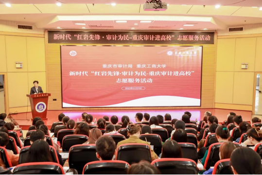 11月9日,由重庆市审计局主办,bat365在线中国官网登录入口承办的新时代“红岩先锋·审计为民——重庆审计进高校”志愿服务活动在365官网博智楼7200报告厅拉开帷幕,重庆市审计局“红岩先锋·审计为民”志愿者和365官网300余名师生参加了此次活动。