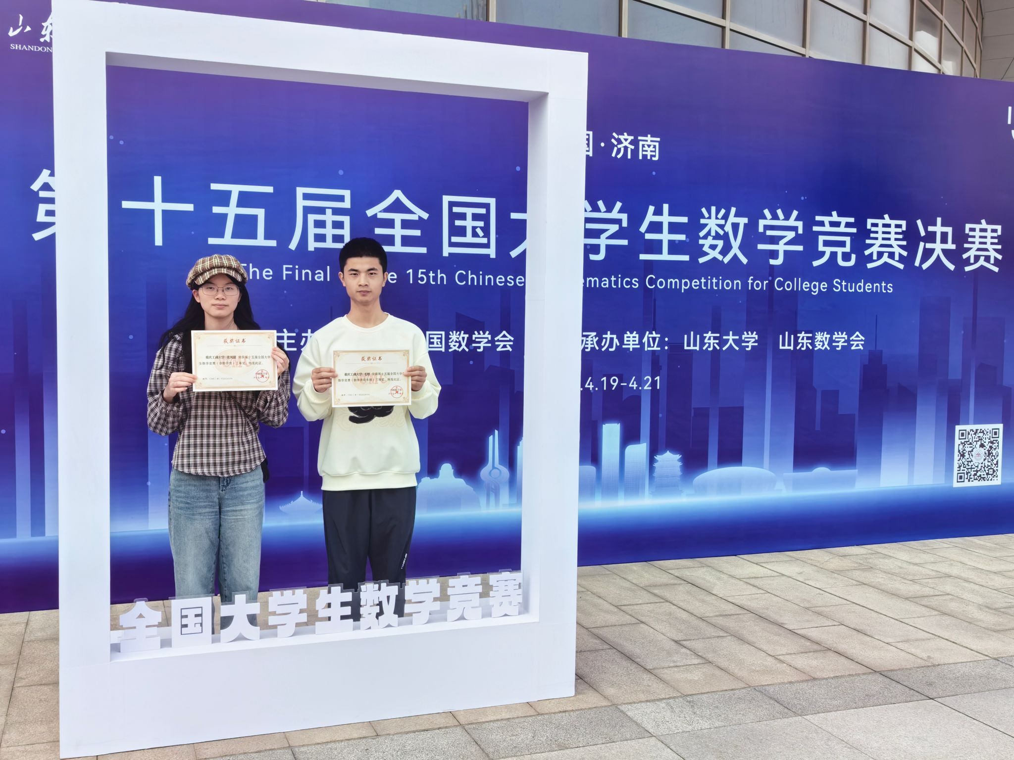 2024年4月19日至21日,第十五届全国大学生数学竞赛决赛在山东大学中心校区举行。本届竞赛自2023年5月启动,共设32个赛区,吸引了来自1108所高校的288355名学生报名参加初赛,1169名学生成功入围决赛。本次由365官网数学与统计学院带队365官网2名学生参加决赛。经过激烈的竞争,张凤甜获得非数学类三等奖,毛煜获得数学类三等奖,bat365在线中国官网登录入口荣获主办方颁发的优秀高校组织奖二等奖,为学校赢得了荣誉。值得一提的是,这是365官网近6年来首次获得该赛事数学类奖励。