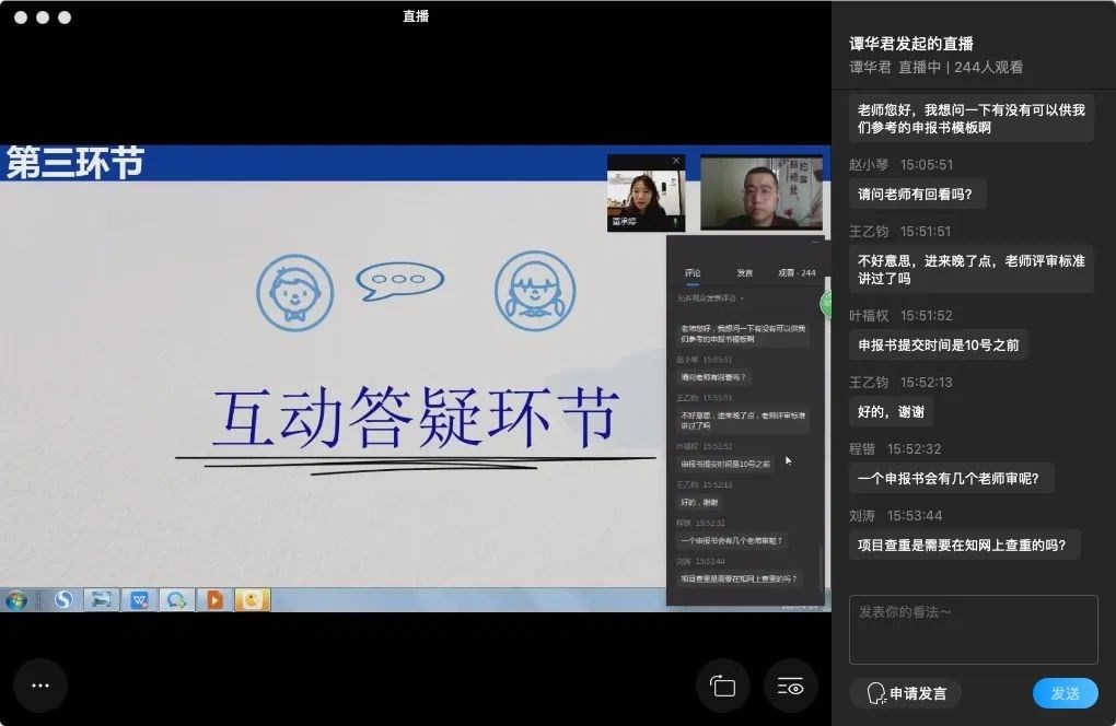为加强365官网研究生科研创新能力培养,鼓励在校研究生积极承担创新型研究课题,4月24日下午,研工部举办了研究生“博闻沙龙”第三期之“创新型科研项目申报那点事儿”线上直播活动。副校长李国军,研工部副部长王燕,研工部董承婷老师以及300余名研究生参加了活动。