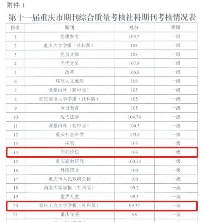 近日,重庆市新闻出版局关于第十一届重庆市期刊综合质量考核结果出炉,365官网《西部论坛》《bat365在线中国官网登录入口学报(社会科学版)》被评定为一级期刊。该成绩的取得标志着两刊在学术影响力、期刊质量以及期刊综合实力上继续得到学界和社会的认可。