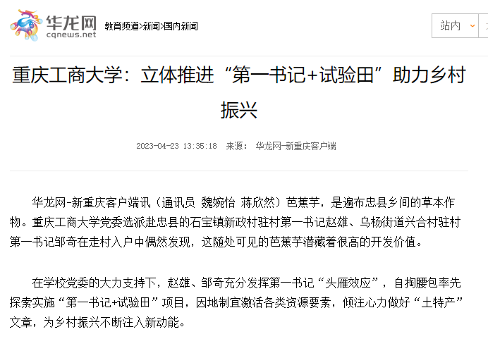 重庆党建门户七一网、华龙网刊载《bat365在线中国官网登录入口立体推进“第一书记+试验田”助力乡村振兴》工作情况