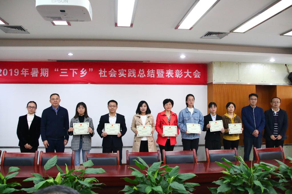 会议伊始,与会人员一起观看2019年暑期“三下乡”社会实践活动视频,回顾了各实践团队暑期“三下乡”的精彩瞬间。紧接着,校团委陆嘉副书记对365官网2019年大学生暑期“三下乡”社会实践主要工作向与会人员做了汇报。随后,各学院分团委负责人就2019年暑期“三下乡”社会实践特色亮点工作和实践成果进行了PPT汇报,展示了各学院实践团队开展的情况和取得的成果。评委们结合各学院社会实践工作的组织和开展情况,进行了评分。随后,校团委杨娟书记宣读了《关于表彰2019年暑期大学生“三下乡”社会实践活动先进集体和个人的决定》。经过材料审核评比以及现场评委评分,最终评选出管理学院、数学与统计学院、财政金融学院、文学与新闻学院、旅游与国土资源学院、法学院、研究生会等7个暑期“三下乡”社会实践工作先进集体,谭予涵、吴卫、罗勇、刘璐、胡菡、罗观、董承婷等7名优秀指导教师,会计学院“益路童行”武隆暑期支教团等21支先进团队,经济学院左晓祺同学的《关于中国省域乡村绿色发展评估、空间差异及趋同性的调研研究》等261篇优秀调查报告,商务策划学院王启鹏同学等11名社会实践宣讲活动优秀个人。与会领导为获奖集体和个人进行了颁奖。