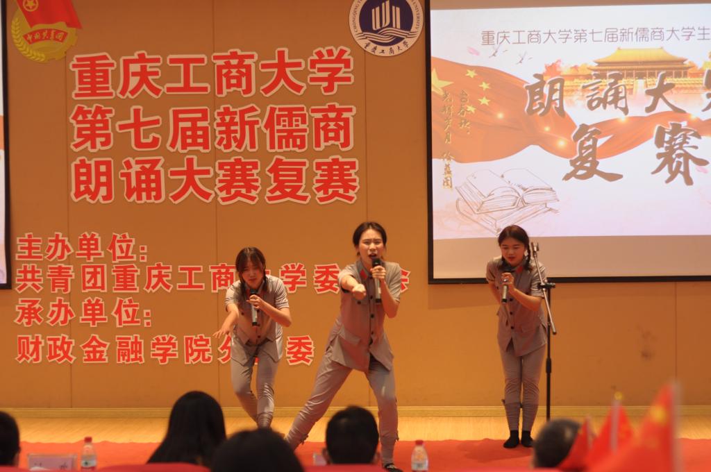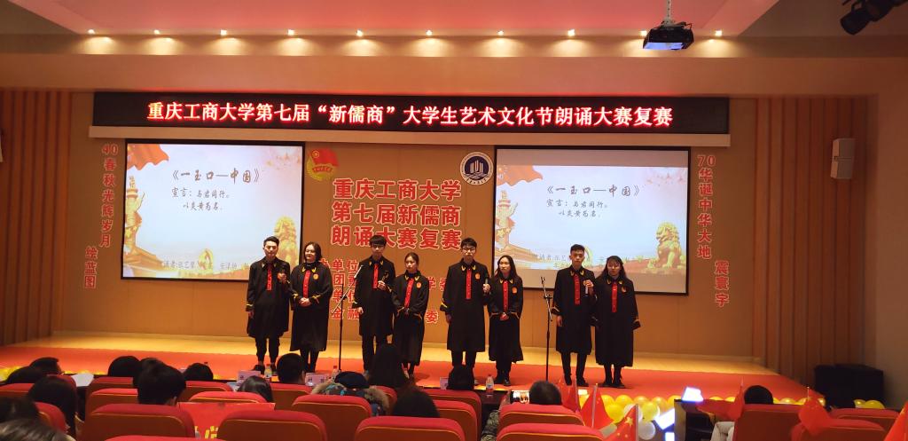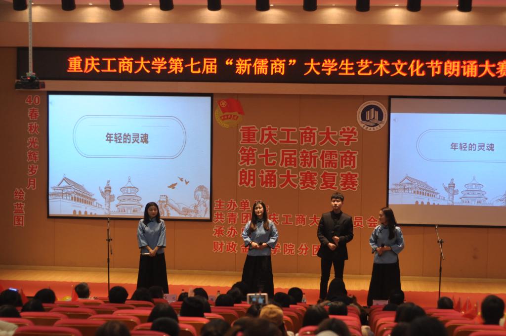 本次比赛参赛选手以团队朗诵的形式进行表演。比赛以来自通识学院的《祖国,以梦为马》拉开了帷幕。选手们激情盈溢,语言流畅,朗诵风格也各不相同。来自各学院的29支队伍的倾力表演让台下观众产生了强烈的情感共鸣,也赢得了大家的赞叹与掌声。最终,商务策划学院的《请铭记,雾重庆》、经济学院的《给小平同志的100首诗》、管理学院的《我的南方和北方》、财政金融学院的《船长礼赞》等12个节目脱颖而出,成功晋级决赛。